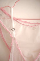 PAOLA - Bienvenue dans un univers de douceur et de mignonnerie, cette culotte aussi sexy que mignonne n'en est pas moins confortable. Légère, douce et extensible, son design simple est mis en valeur par des élastiques à broderies rose bonbon. Le petit plus ? Des coeurs en perles nacrées cousus directement sur le devant, de quoi succomber! Culotte en maille polyester doublée avec du jersey de coton eoko-tex.