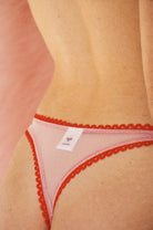 Ce tanga plein d'amour et de délicatesse est une ode au romantisme. En mesh polyester fluide, doux et extensible il est doublé d'un jersey de coton eoko-tex pour vous assurer tout le confort nécessaire. Sa couleur rose pâle et ses élastiques brodés d'un rouge intense font de lui un intemporel en même temps qu'un tanga ultra tendance.