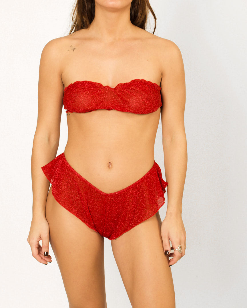 NOELLE - un tissu lurex rouge scintillant pour être la plus jolie durant ces fêtes c'est pas ce que l'on souhaite toutes par hasard? Doublé d'un jersey de coton eoko-tex pour vous assurer le meilleur confort ;)