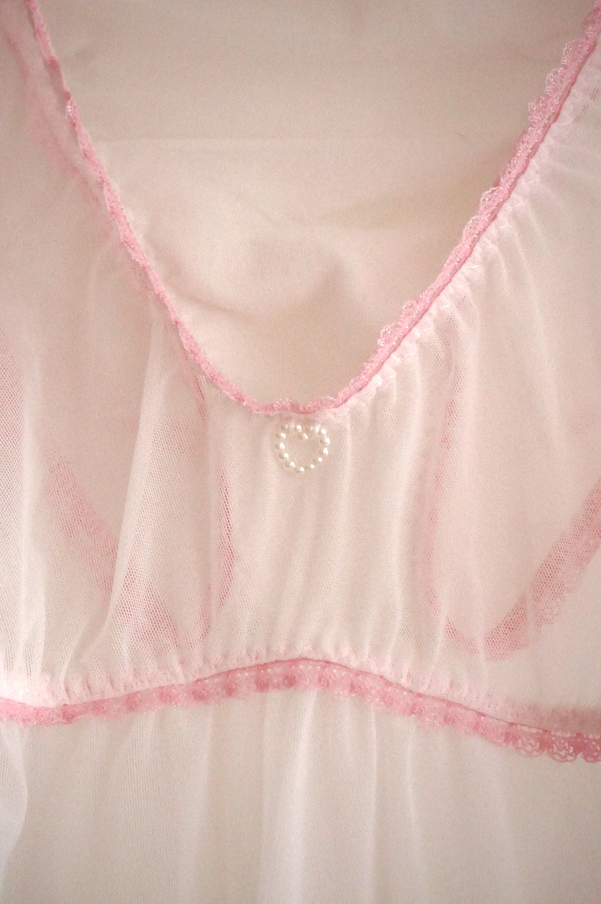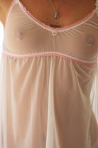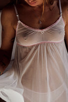 PAOLA - Bienvenue dans un univers de douceur et de mignonnerie, cette nuisette aussi sexy que mignonne n'en est pas moins confortable. Légère, douce et extensible, son design simple est mis en valeur par des élastiques à broderies rose bonbon. Le petit plus ? Des coeurs en perles nacrées cousus directement sur le décolleté, de quoi succomber! Nuisette en maille polyester.